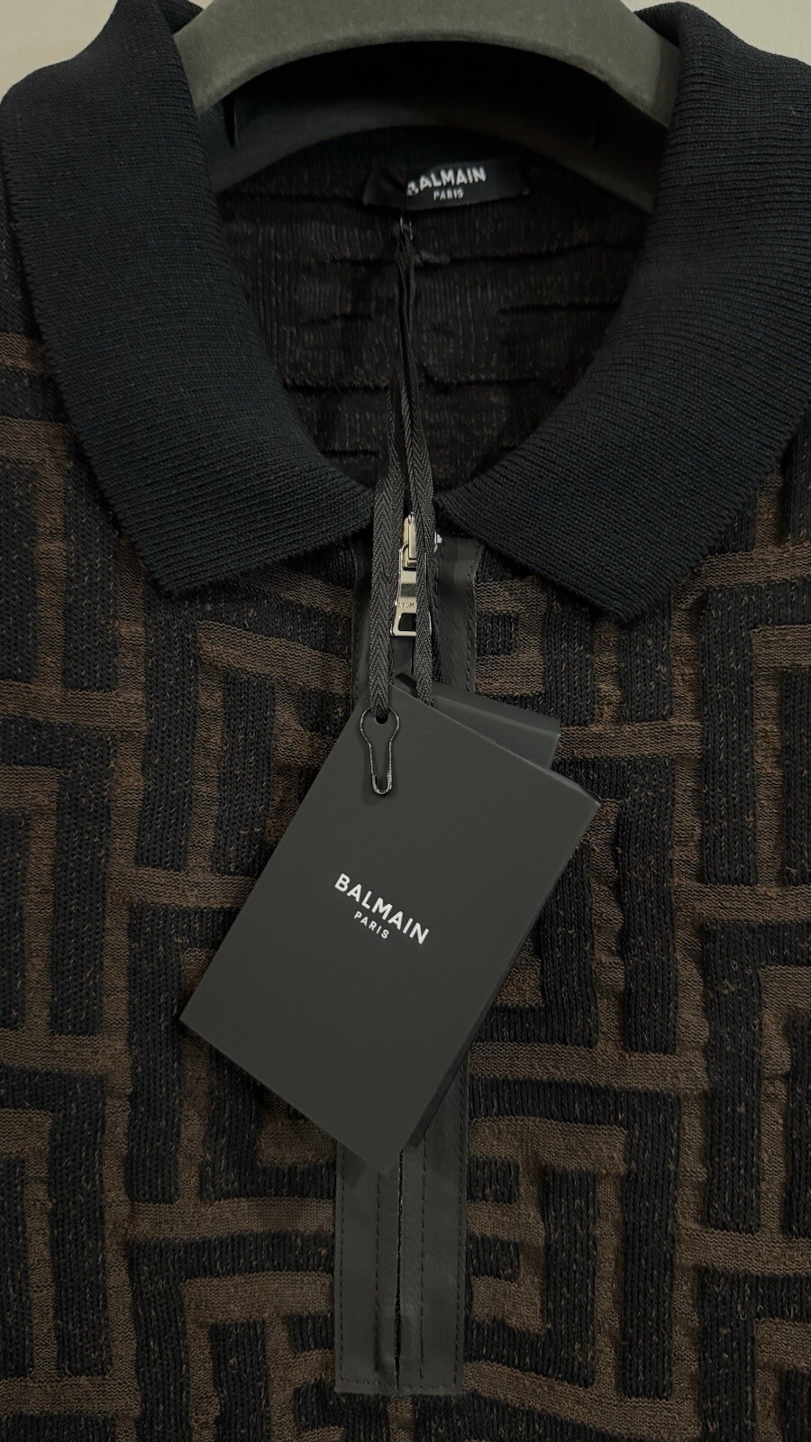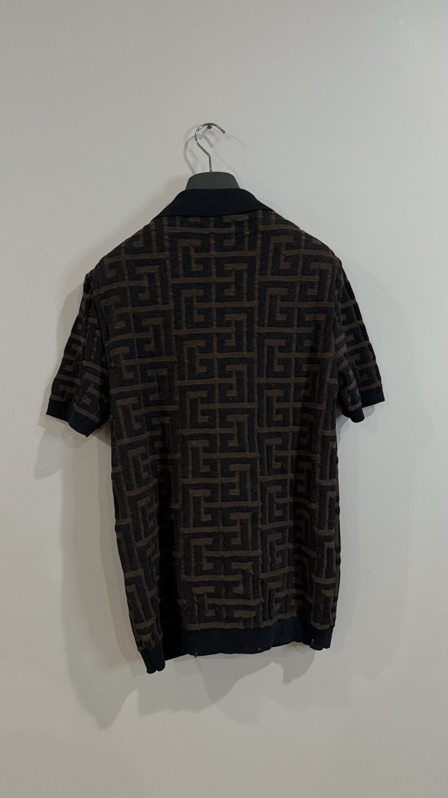 Balmain Maxi Monogram Destroyed Knit Polo Shirt-Marron Vif LG $1350
