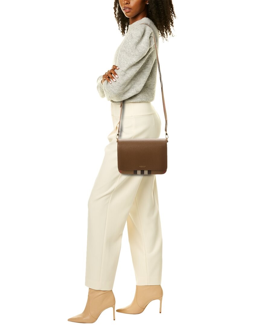 About the brand: Iconic patterns, materials and silhouettes have made Burberry a coveted luxury staple since 1856. From waterproof, patented gabardine fabric to the unmistakable vintage check and the more modern monogram pattern, Burberry boasts undeniably British influence with timeless appeal.. Made in Italy. Check Canvas & Leather Shoulder Bag in earth check canvas and leather and gold-tone hardware. Interior design details: leather lining, wall pocket. Measures 9.5in wide x 6.75in high x 3.5in deep. Adjustable and removable shoulder strap drops 23in. Fold-over flap with magnetic closure. Please note: All measurements were taken by hand and are approximate; slight variations may occur.. Our products are 100% genuine. In some cases we purchase merchandise from trusted independent