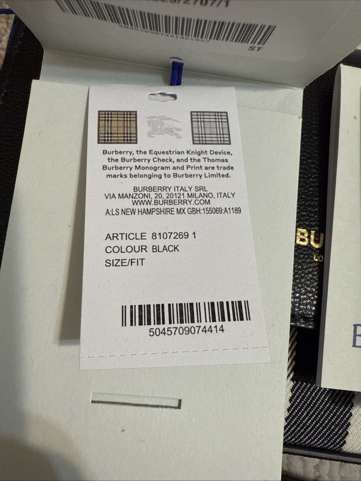 Burberry Hampshire Crossbody House Check Black Leather New