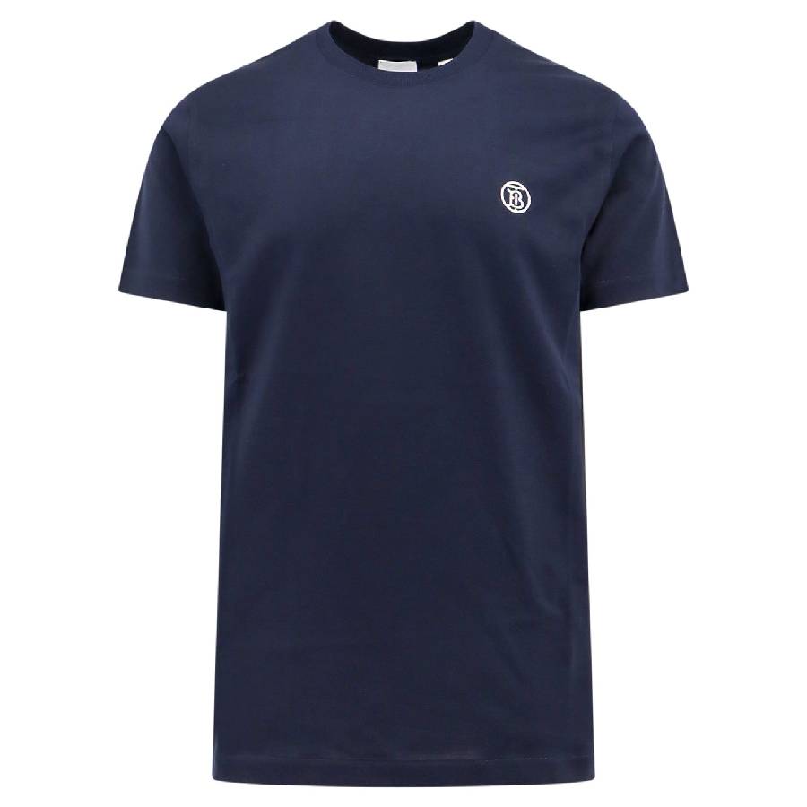 Burberry Men's Tops. Fashion category: T-Shirts & Henleys. SKU: 8084020. Color: Coal Blue. Burberry Logo Embossed Cotton T Shirt. This shirt features short sleeves, logo embroidery at the chest, a crew neck, and a straight hem. 100% Cotton.