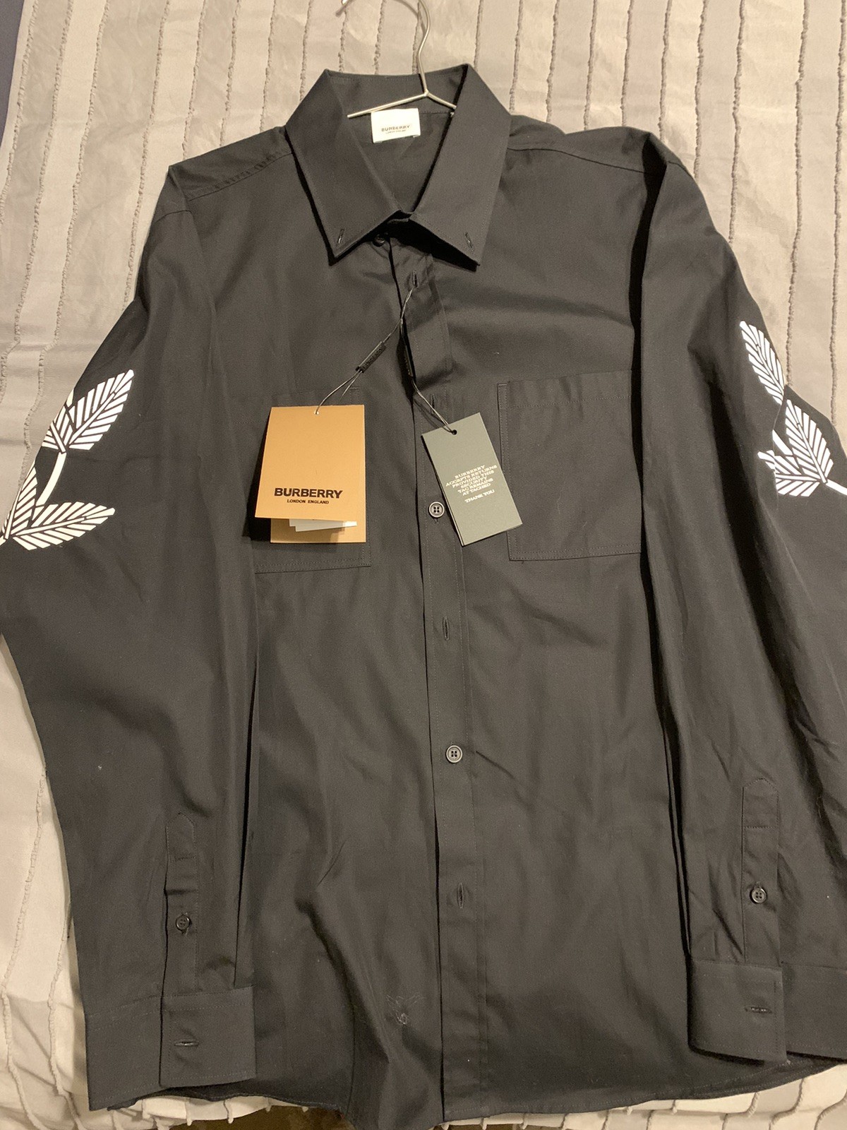 Burberry Long Sleeve Black Men’s Shirt XXL/ White Design Back And Back Of Sleeve