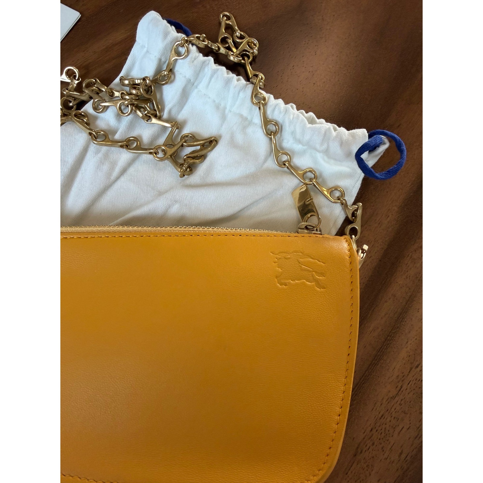 Burberry's Micro Shield Sling bag is crafted of leather and features a detachable chain-link shoulder strap.