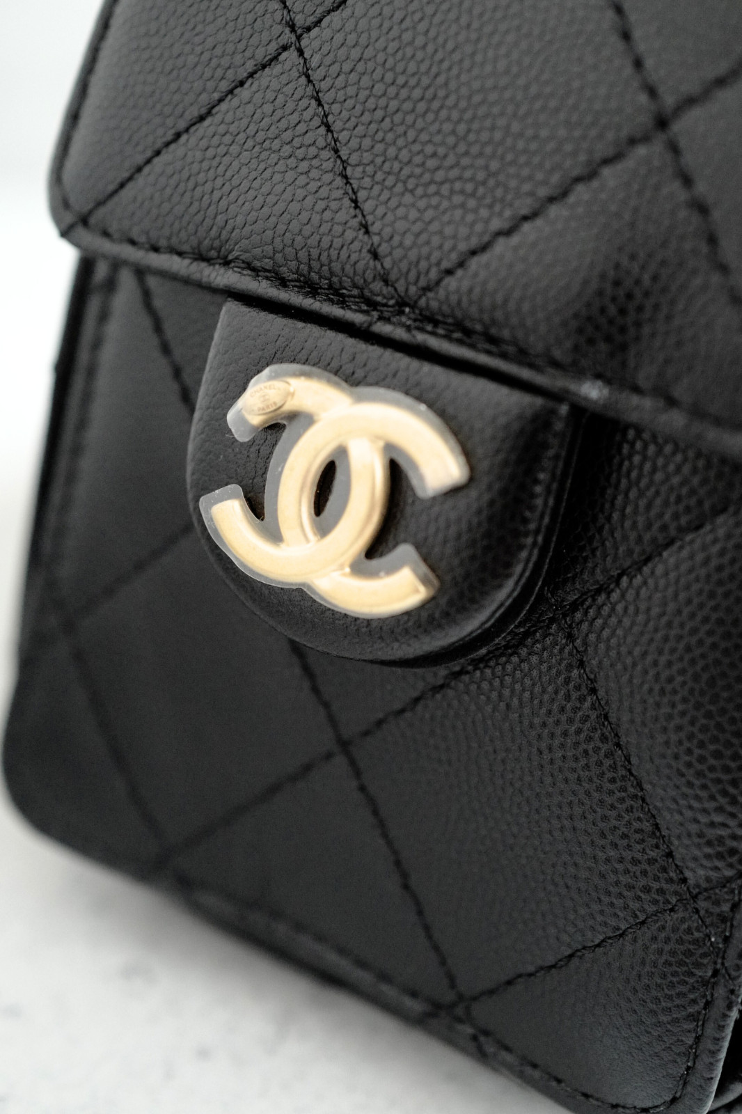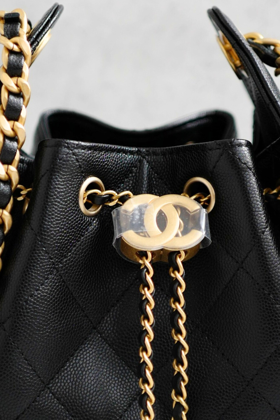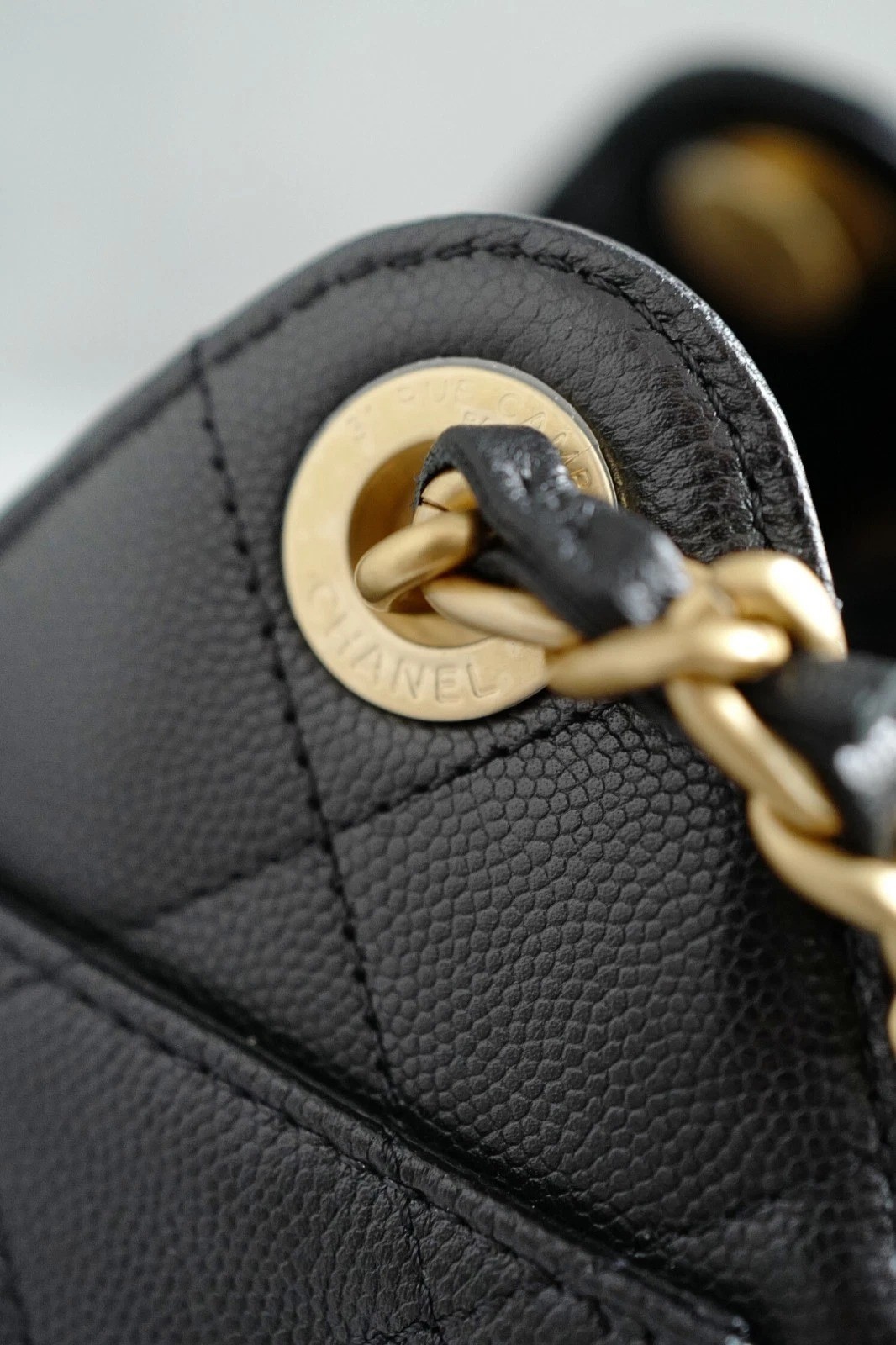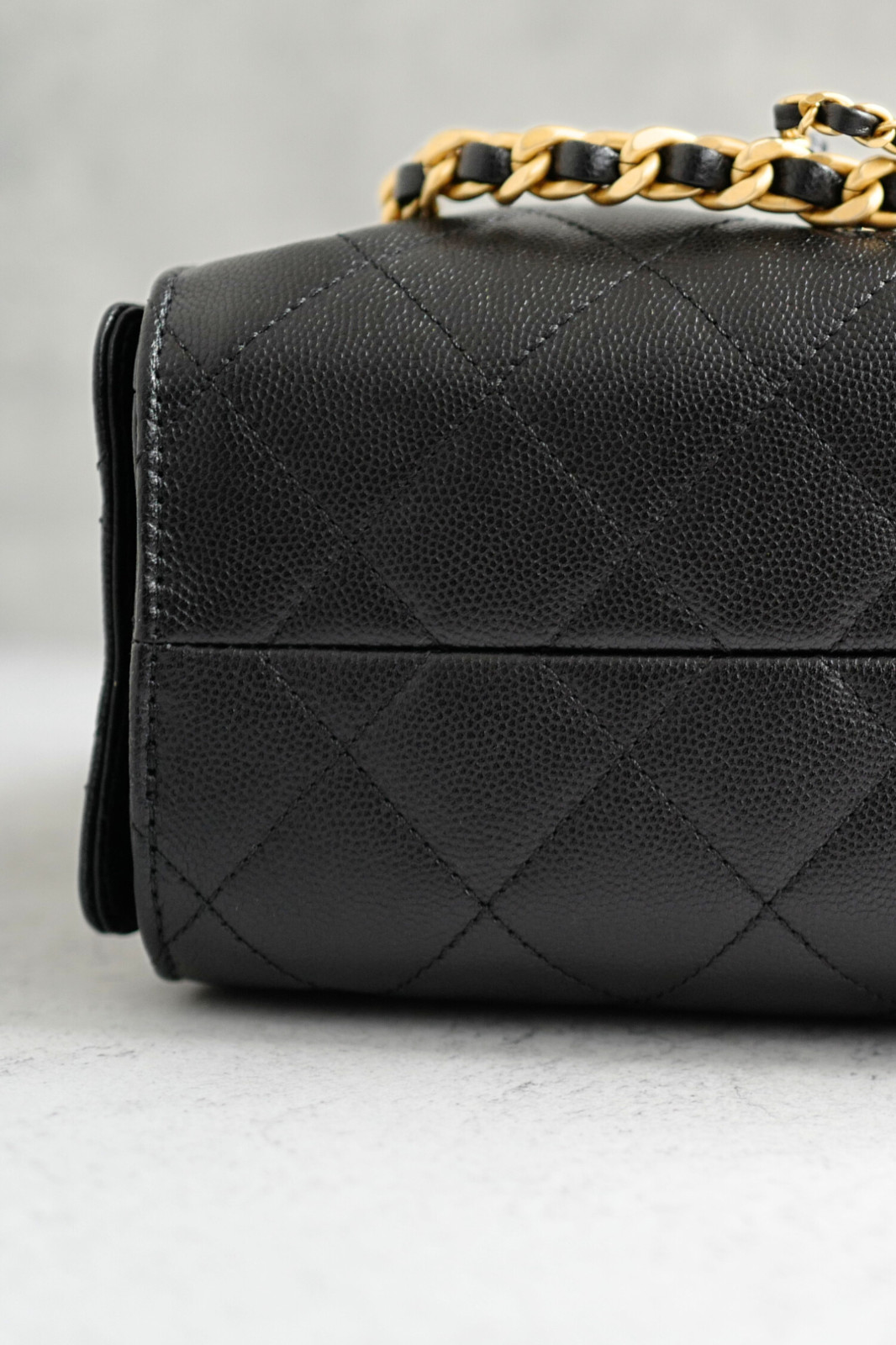 The interior is fully lined in smooth leather, providing a polished finish while maintaining practicality for daily essentials. Despite its compact profile, the bag offers functional space with approximate measurements of 7.9 inches in height, 8.7 inches in width, and 4.9 inches in depth, making it ideal for carrying essentials while maintaining a sleek and elegant look. The classic black exterior paired with gold hardware ensures timeless appeal and effortless styling.