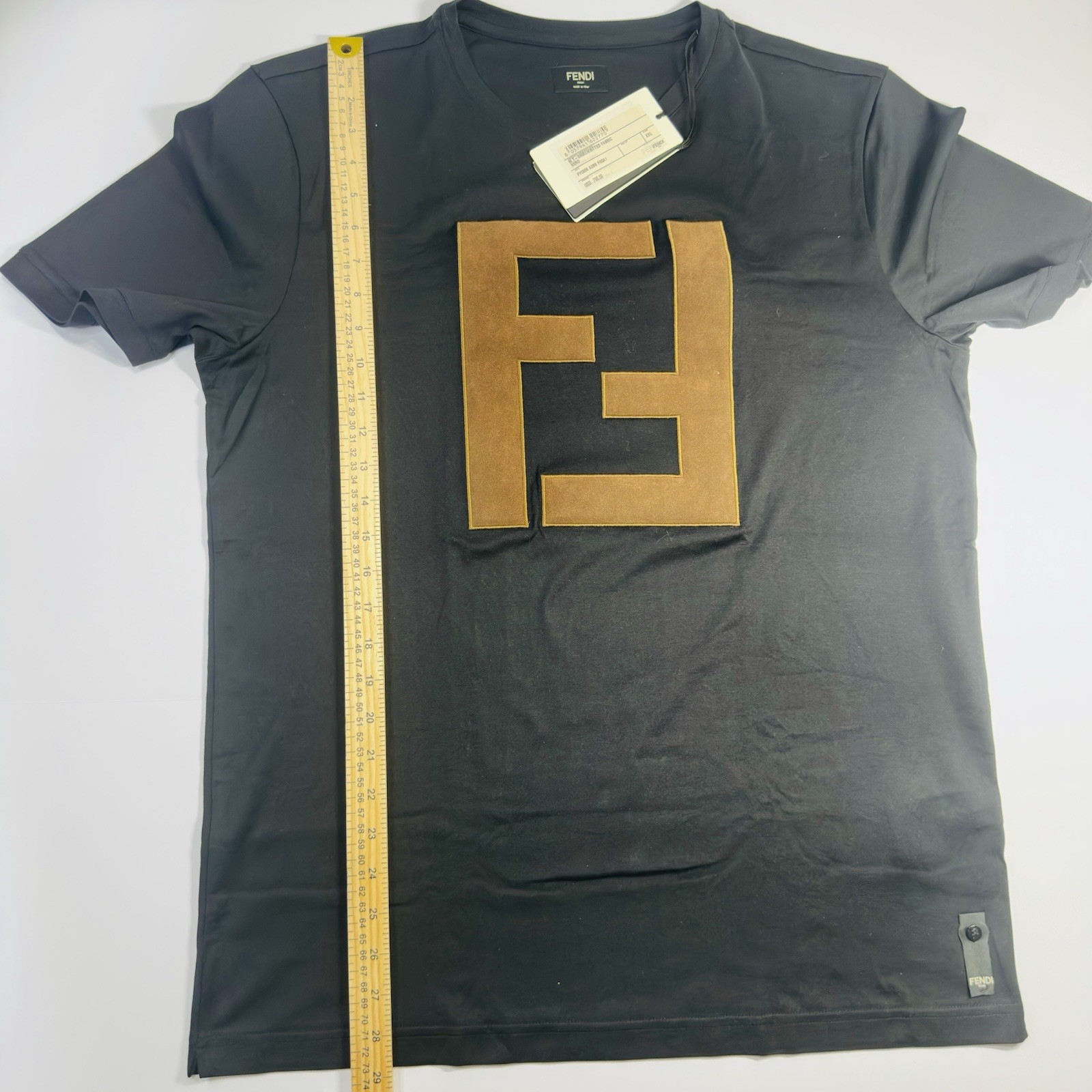 The product is a XXL black Fendi men's t-shirt. This high-quality t-shirt is designed for regular fit and is perfect for men who prefer to wear a larger size. The iconic Fendi branding adds a touch of luxury and style to this wardrobe essential, making it a versatile and fashionable addition to any man's clothing collection.