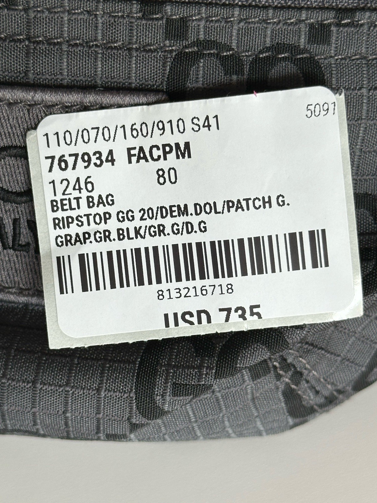Gucci Maxi GG Logo Gray/Black Nylon Belt Bag 767934 IT NWT