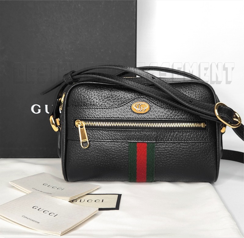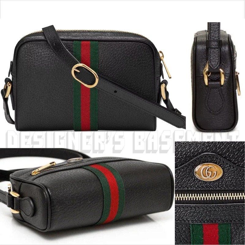 GUCCI mini Ophidia GG logo black Leather Camera cross-body bag NIB Authent $1890