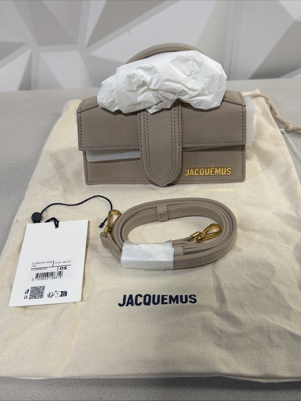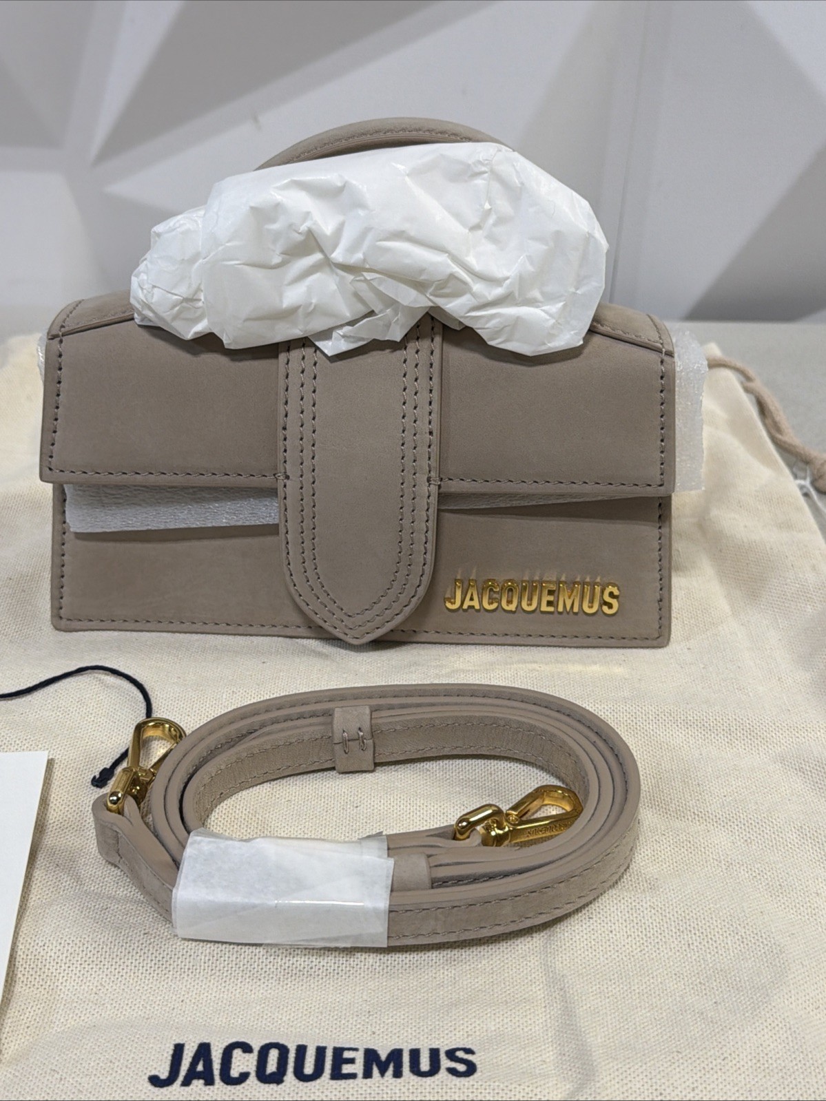 JACQUEMUS LE BAMBINO MINI FLAP BAG DARK BEIGE SUEDE