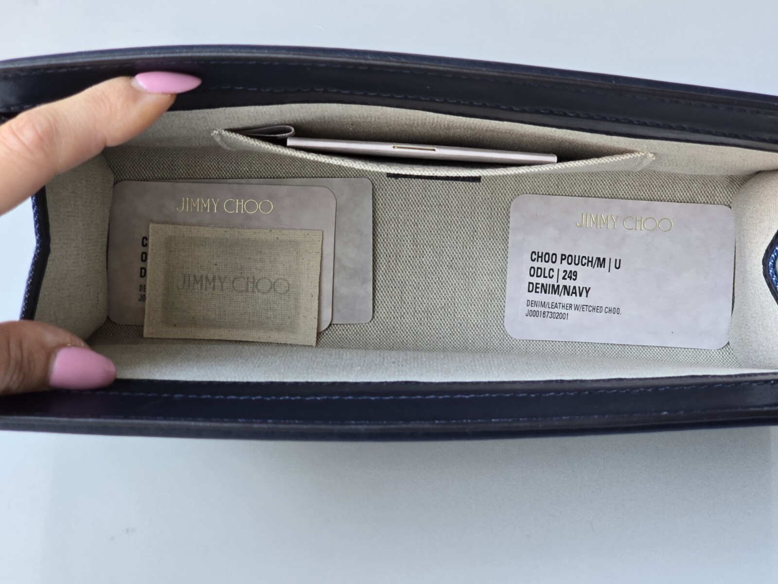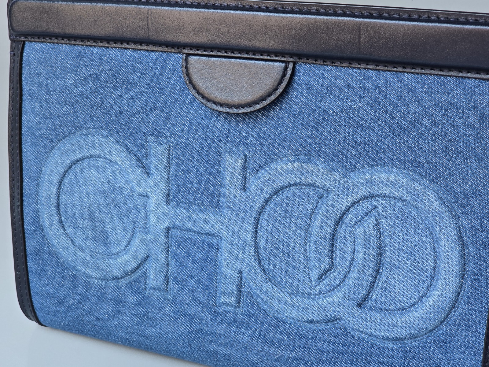 Jimmy Choo Clutch Blue Denim Navy Leather Pouch Bag CHOO Logo Large - Amazing