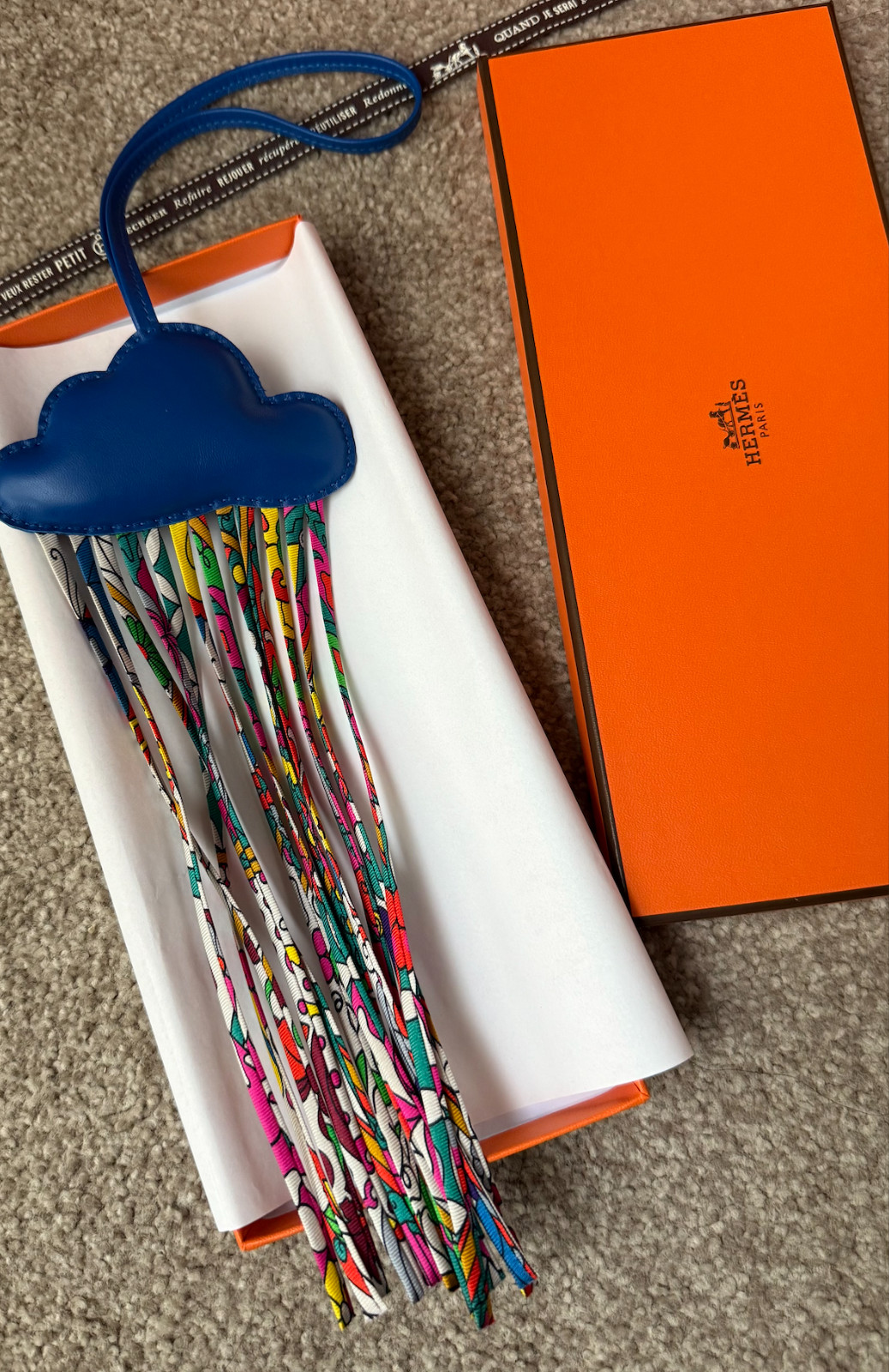 NEW HERMES Bag Leather & Silk Charm Petit H Cloud nuage -Blue