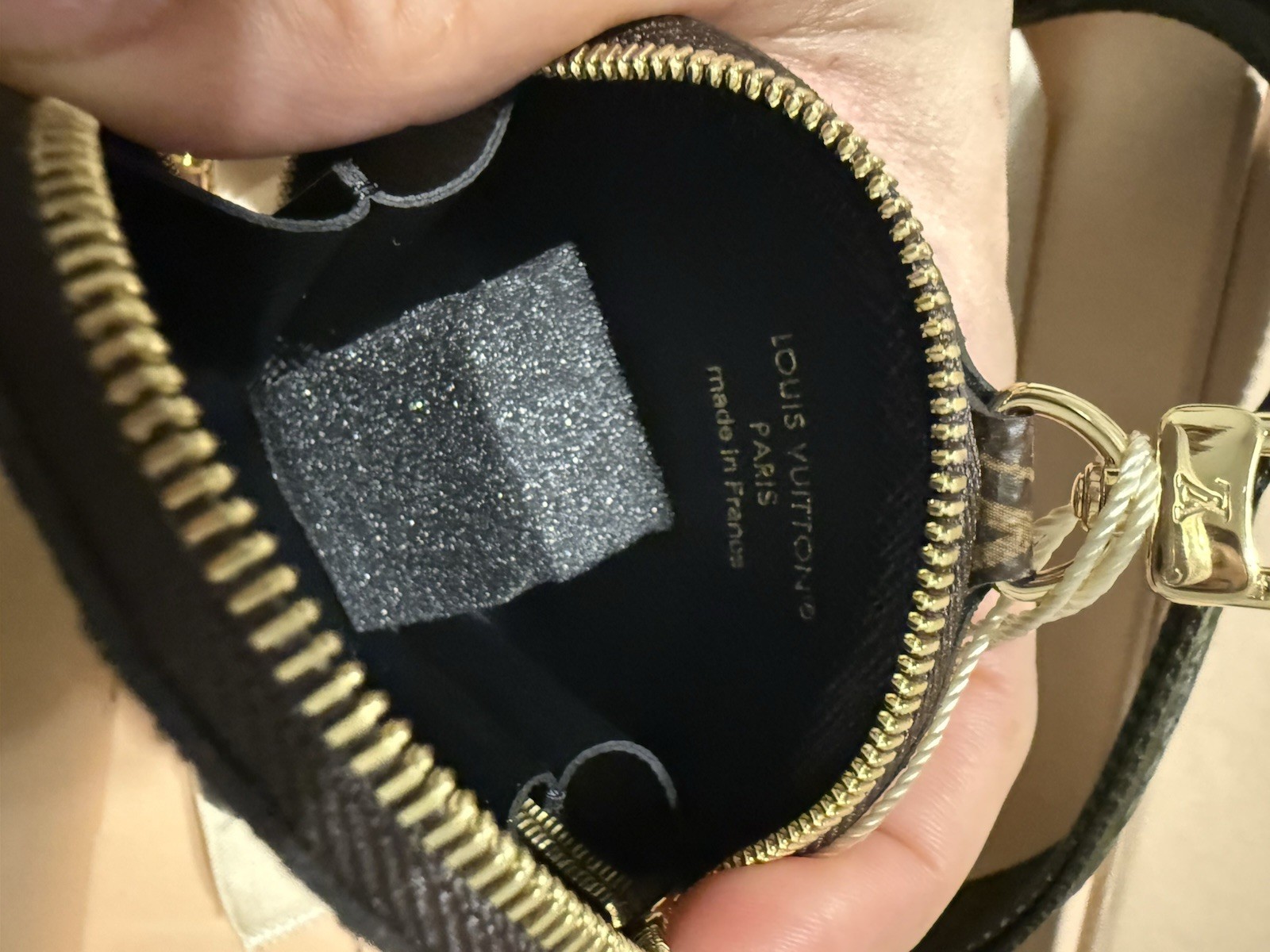 Adjustable strap, coin purse, original box and dust bag, and tag