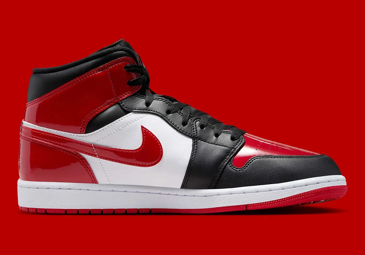 Nike Air Jordan 1 Mid Patent Bred Black Red HV4091-006 Men’s Shoes NEW