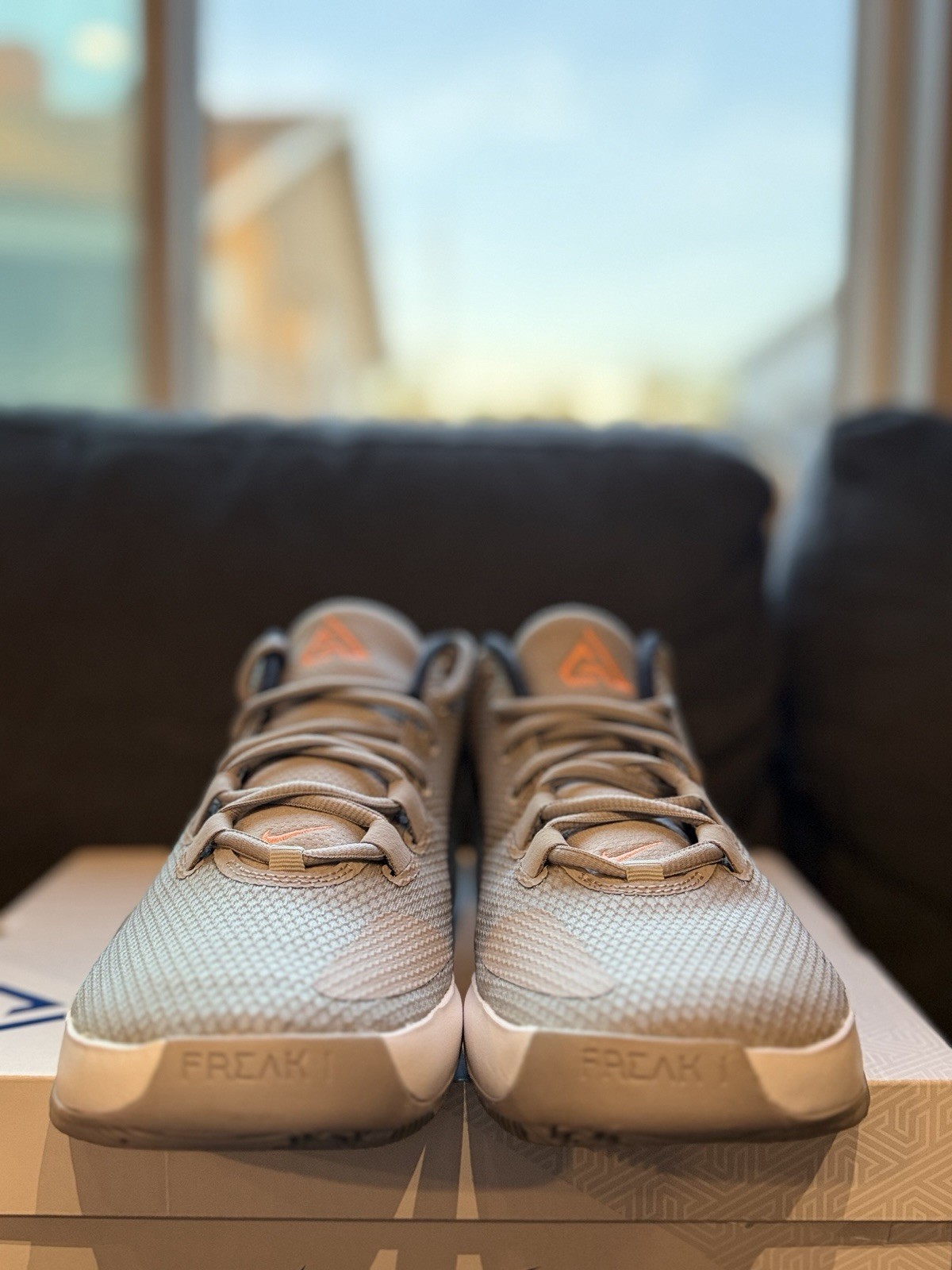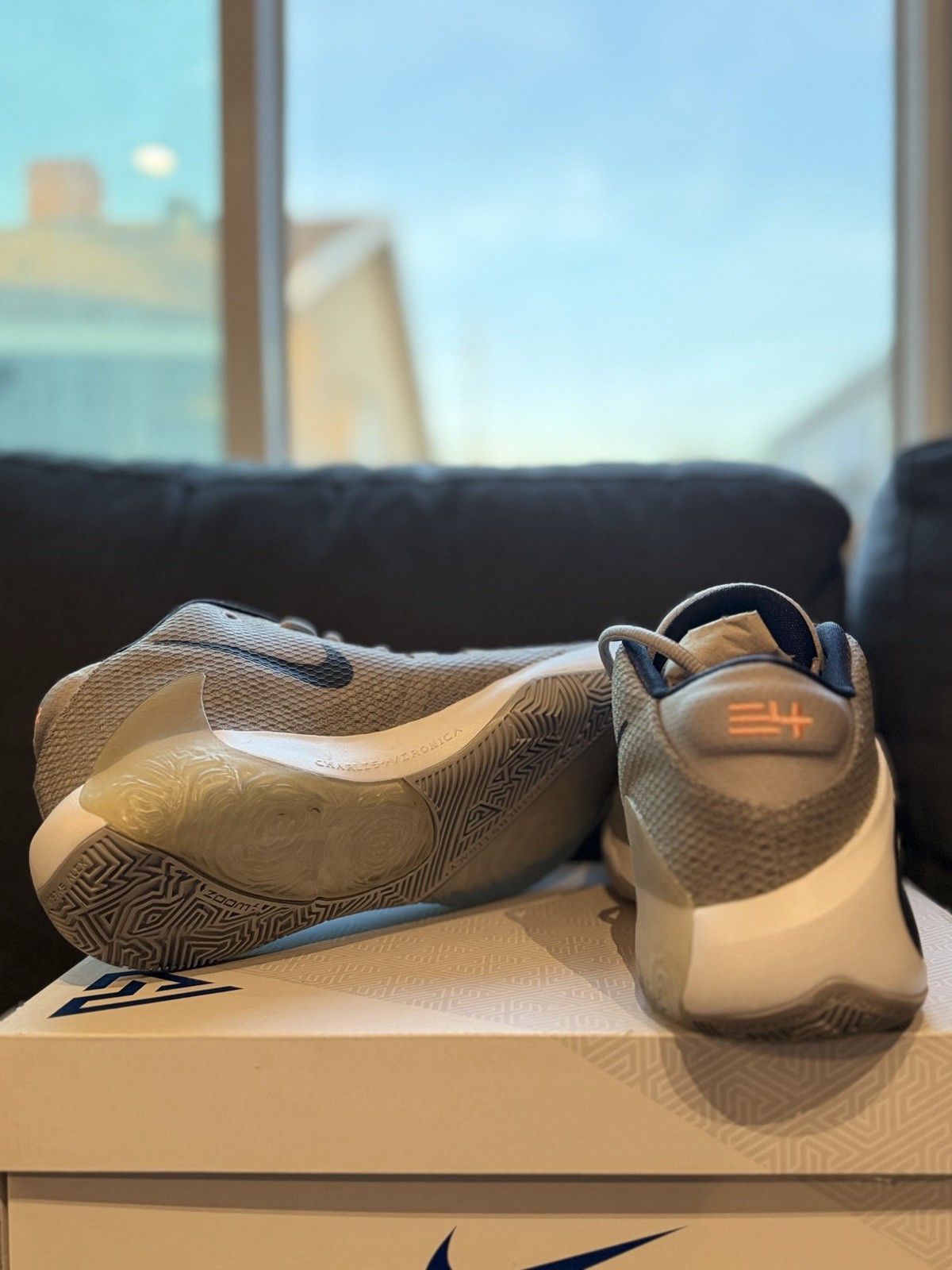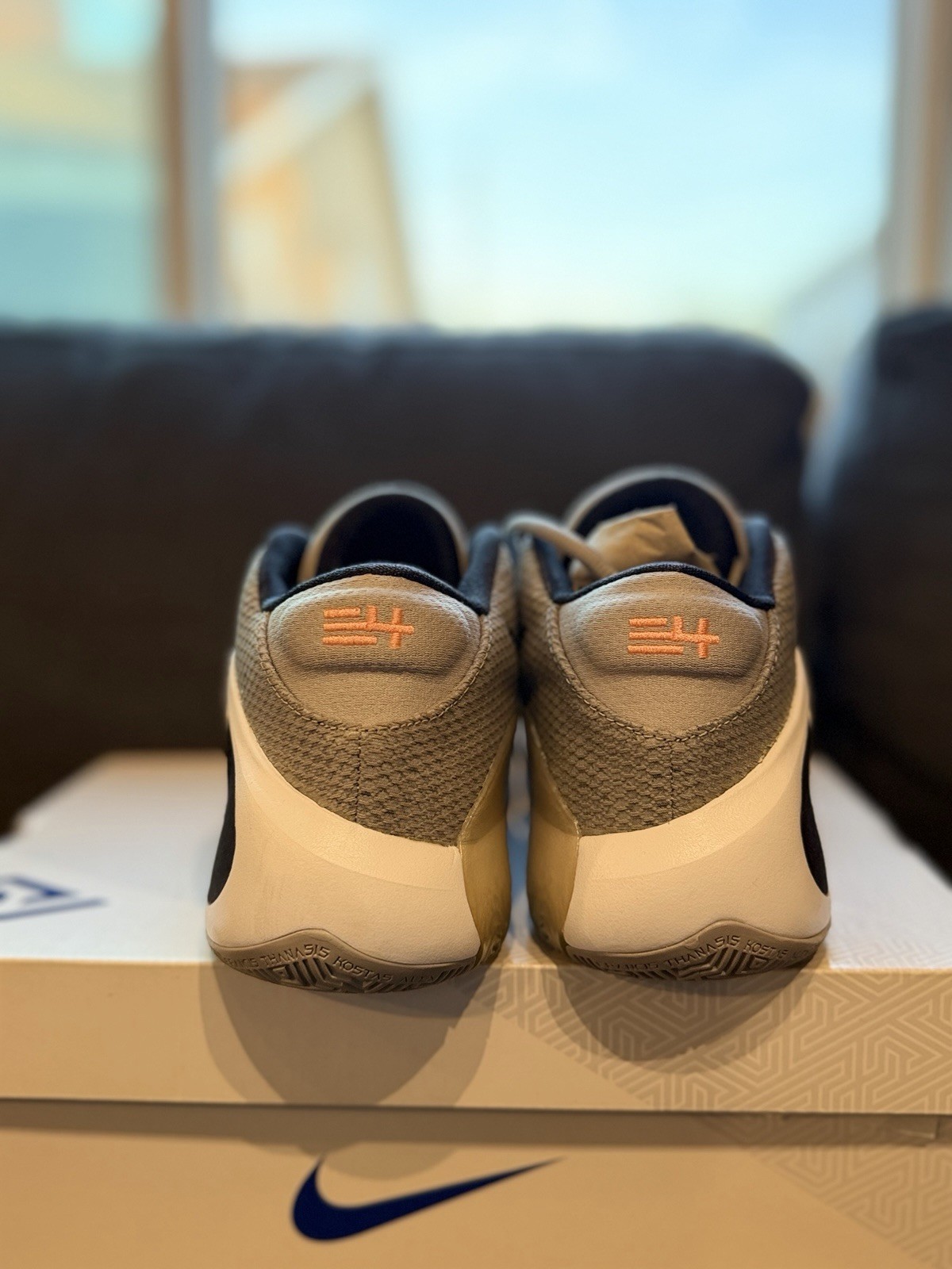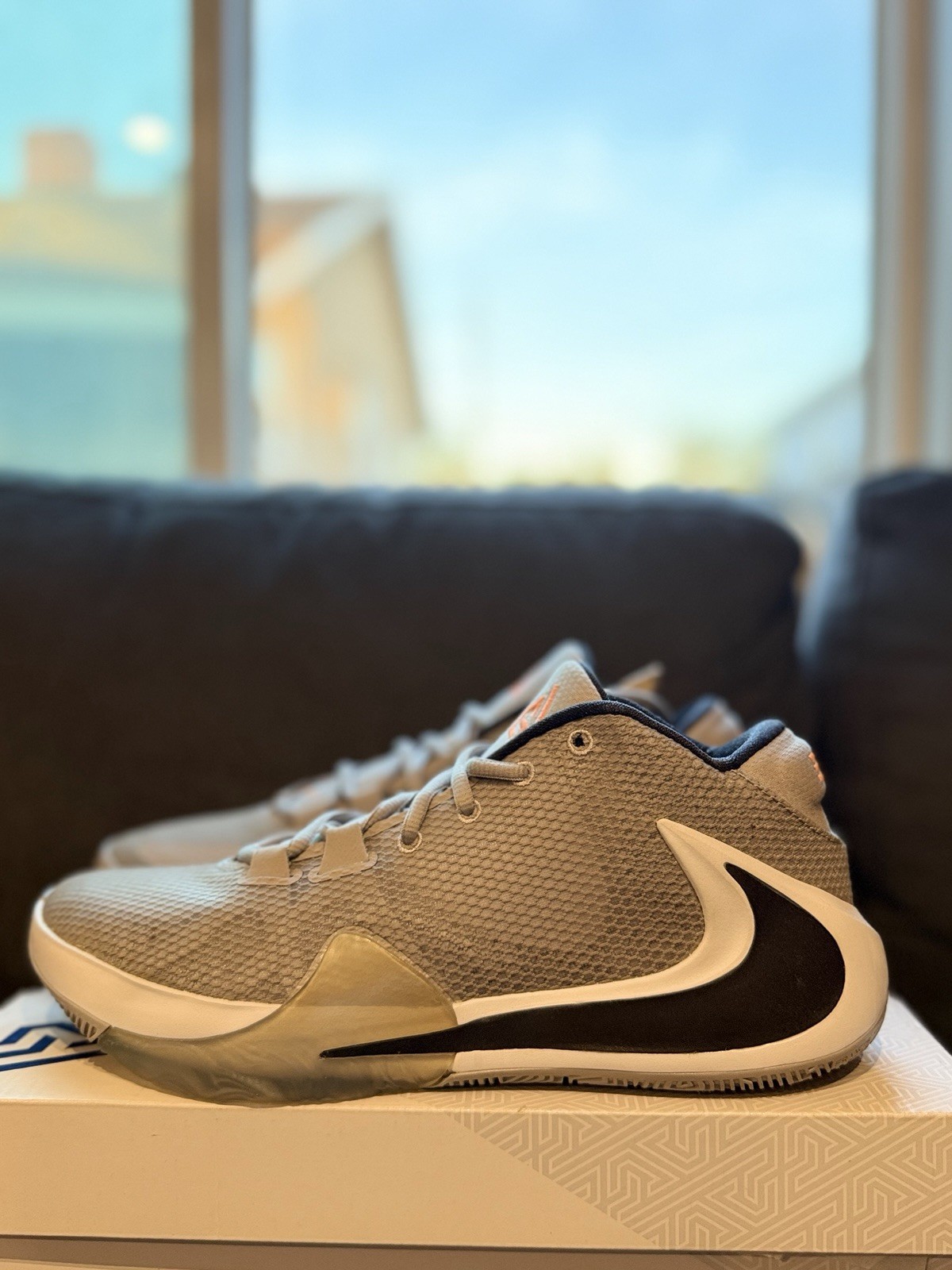 The Nike Zoom Freak 1 Atmosphere Grey/Oil Grey in US size 9.5M is a stylish and versatile athletic shoe perfect for both activewear and casual occasions. Featuring a low top design with a lace-up closure, this sneaker offers a comfortable fit with a foam insole and rubber outsole. The mesh upper material ensures breathability, while the gray color scheme gives it a modern and sleek look. Released in 2019 as part of the Nike Zoom Freak product line, this shoe is ideal for men who value both fashion and performance in their footwear choices.
