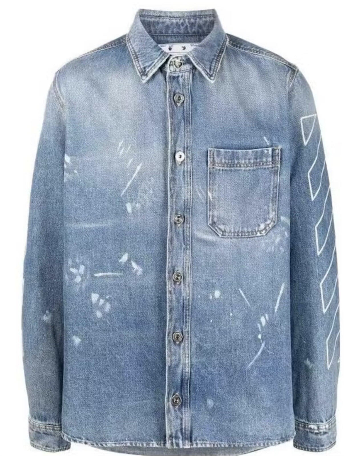 The shirt comes in a striking denim color that is sure to turn heads. It is made by the renowned brand, Off-White, and is part of their exclusive collection. This shirt is a must-have for any fashion-forward man who wants to make a statement.