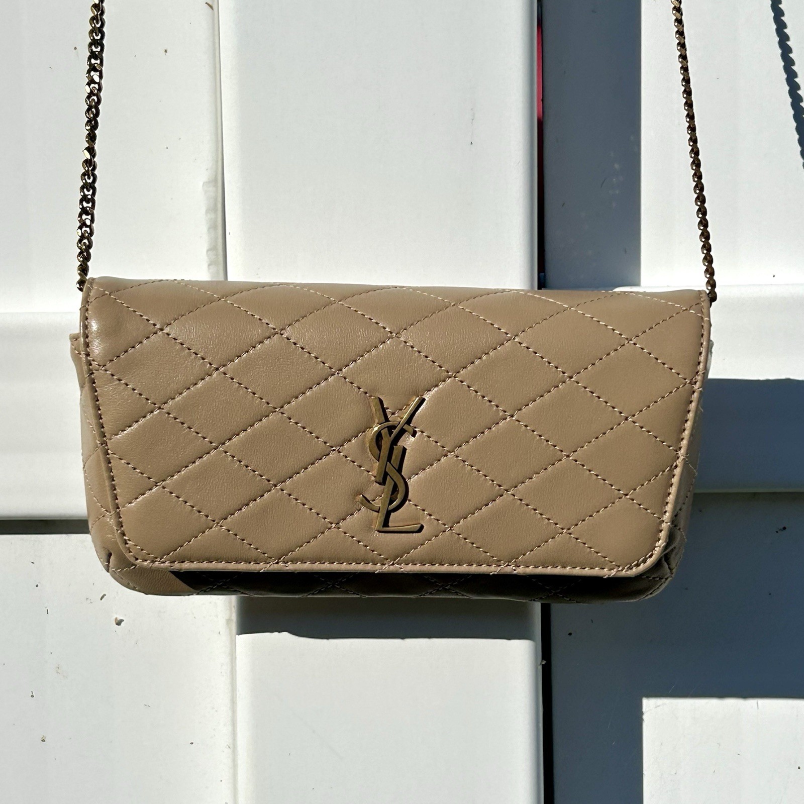 SAINT LAURENT GABY CROSSBODY MINI BAG CHAIN PHONE HOLDER TAN LEATHER GOLD HW NEW