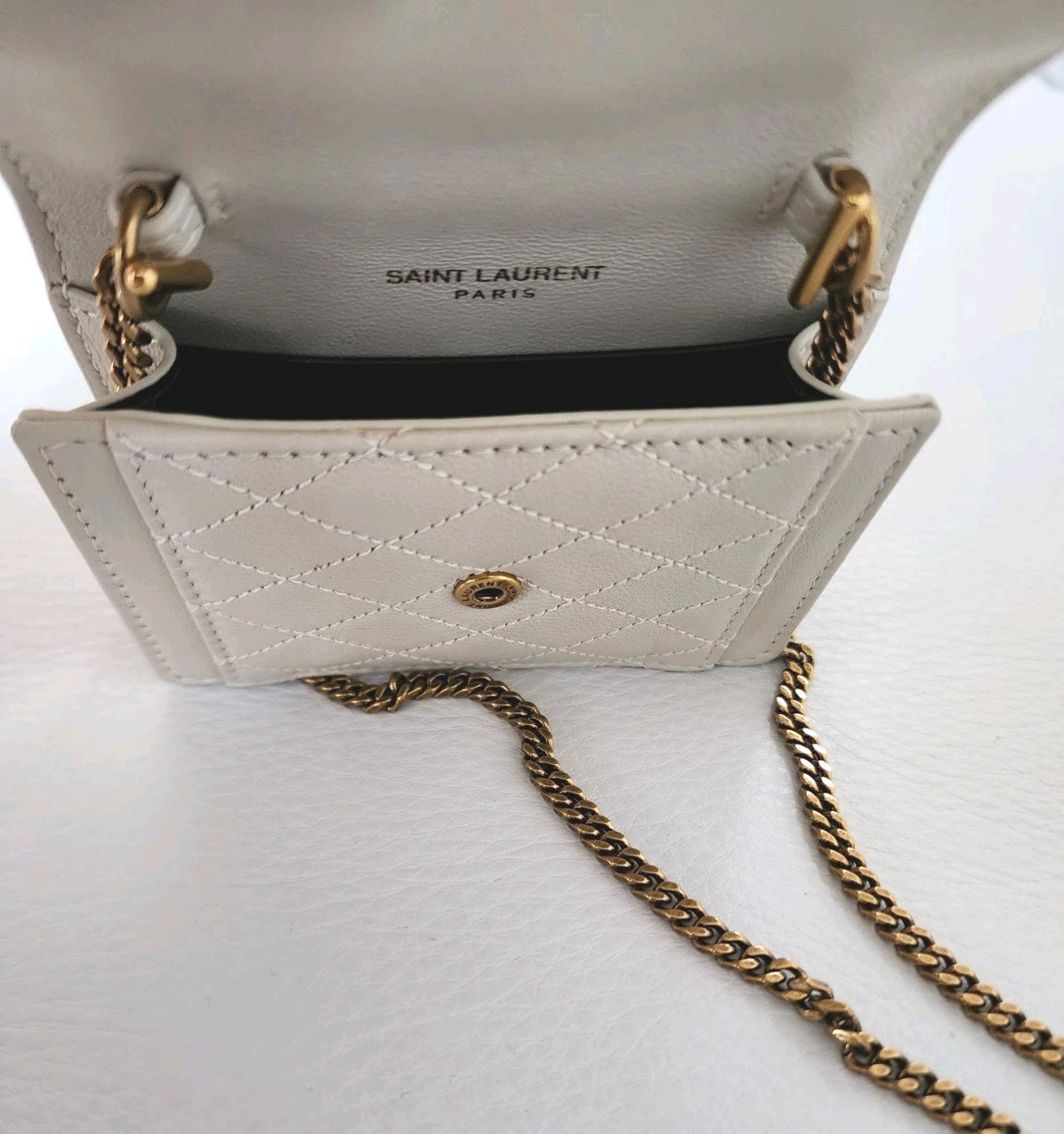 Saint Laurent Gaby Mirco Card Holder Crossbody Bag Monogram Off-White YSL Chain
