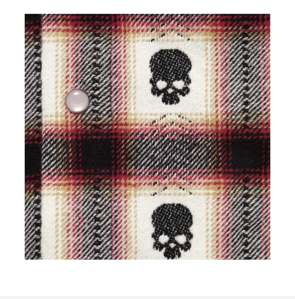 All cotton flannel with woven pattern. Snap front closure with snap flap patch pocket at chest.