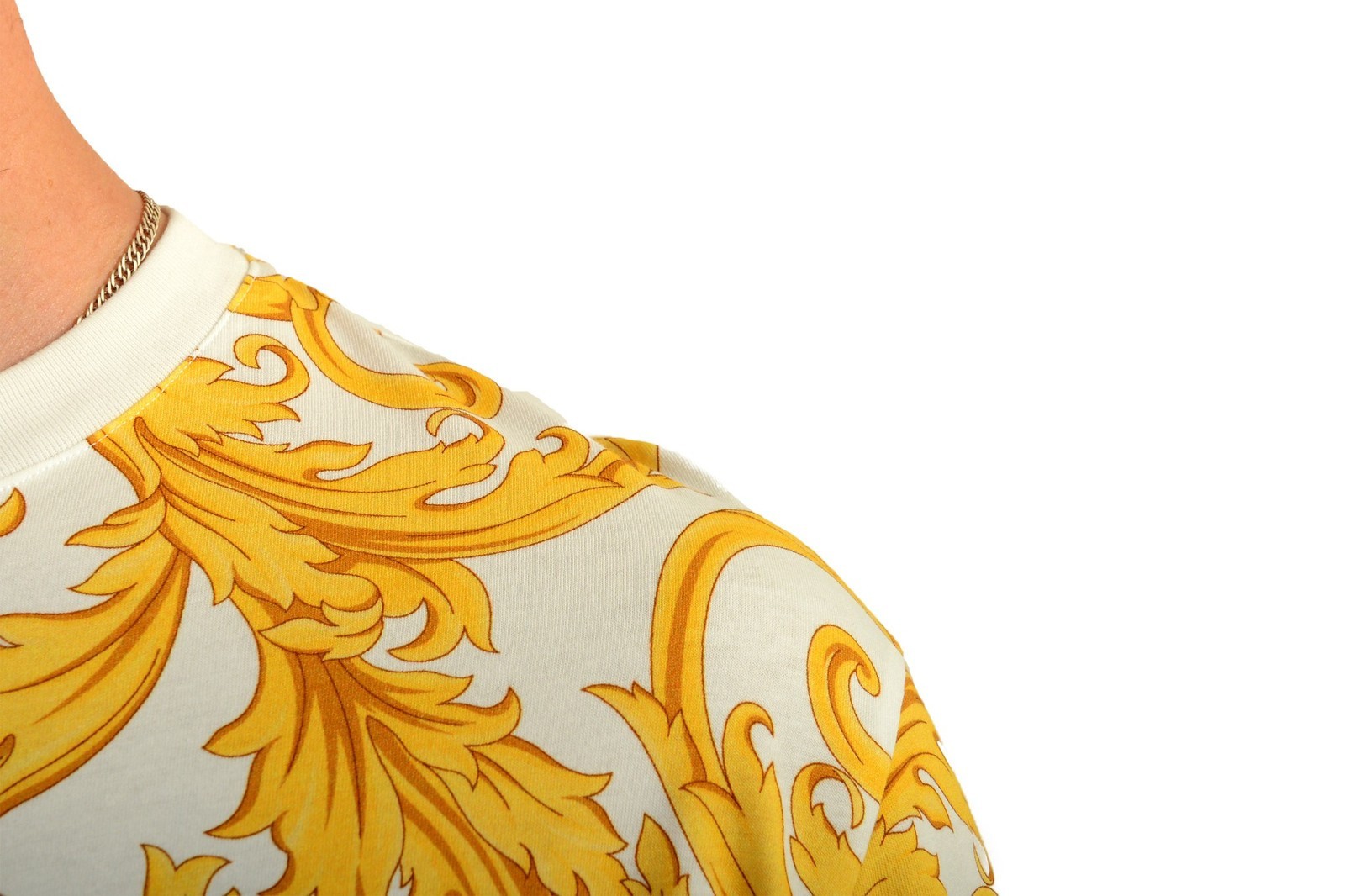 Versace Gold Barocco Print White Short Sleeve T-Shirt Size L