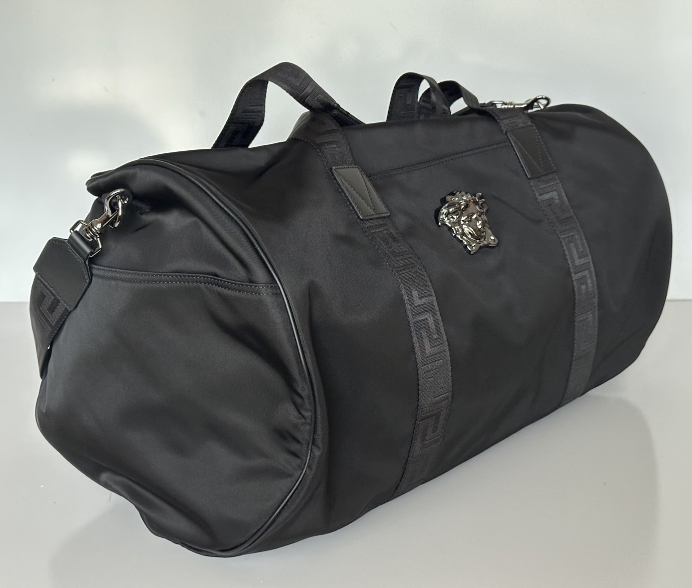 Versace Medusa Head & Greca Key Nylon Large Black Duffle Bag Italy 1015571 NWT