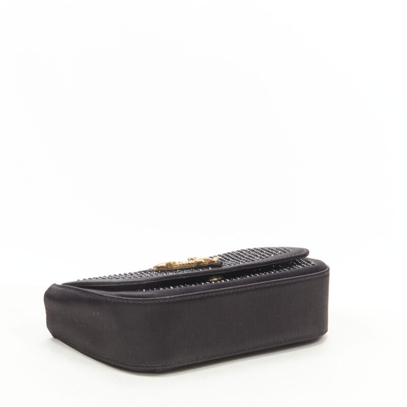 VERSACE Virtus Barocco black crystal satin flap crossbody clutch bag