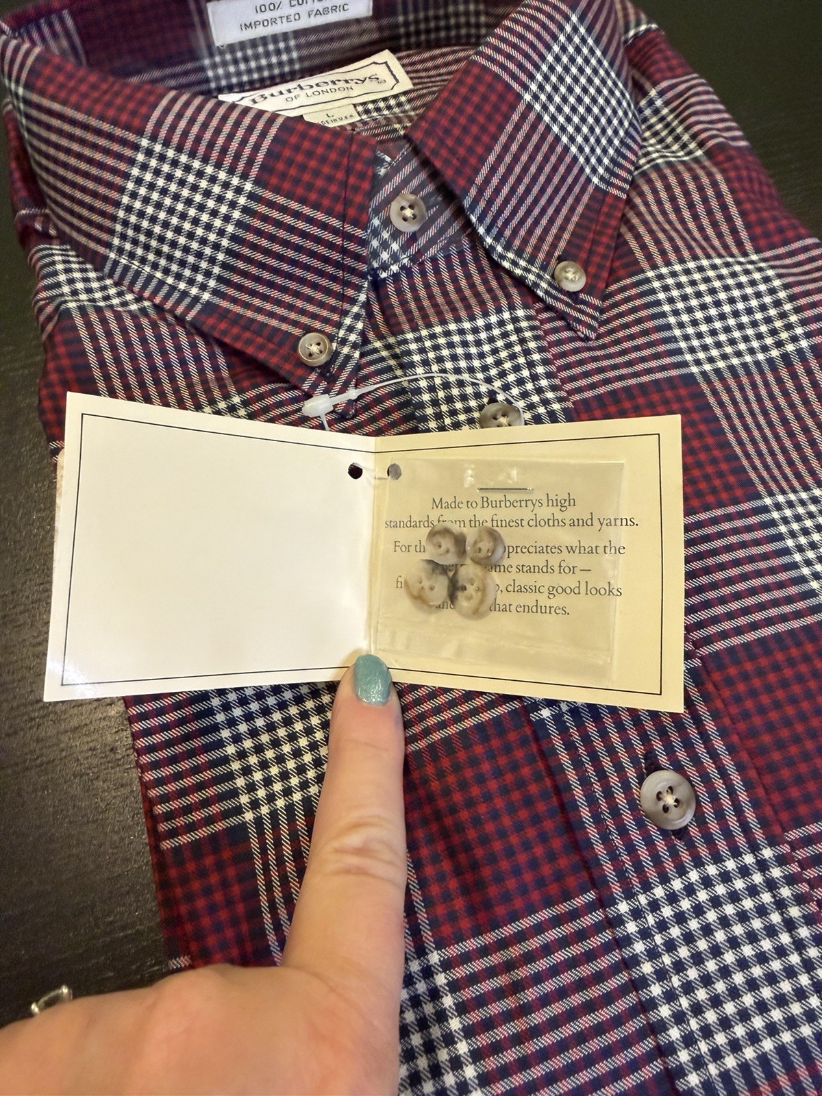 Vintage Burberry’s of London men’s long sleeve button down shirt. 100% cotton. Made in the USA. Still in original